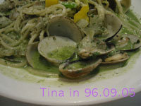 蘿勒青醬口味的蛤蠣麵,蛤蠣小腥....不過阿桑的慣性讓我挑光吃掉了,最後才想起可以不要吃完