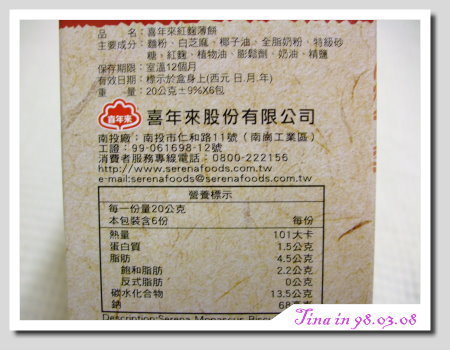 大體上來說還不錯吃,如果沒吃過台灣菸酒公司的我會覺得喜歡,但吃過台灣菸酒公司的紅麴餅乾後,喜年來就稍微輸了一點囉