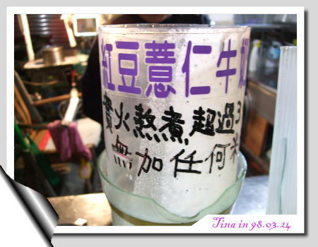 趁著老闆一邊認真說一邊幫我把杯子套上袋子時,我又偷偷拍了煮好的薏仁,軟綿濃郁的樣子讓我更渴了,老闆看到我在偷拍笑笑的說我沒遇到在煮薏仁,不然那麼大一鍋會讓我嚇到的。