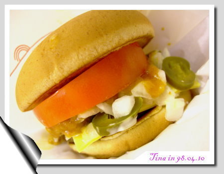當我猶豫要點米堡還是據說很好吃但沒吃到摩斯吉士漢堡時,小孟跟我說他們的番茄很好吃唷~看了一下米堡是沒有番茄的,所以~就是你啦!摩斯吉士漢堡!!