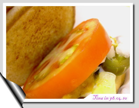 墨西哥辣椒片的搭配不錯呢~不同於一般的辣醬,帶點蔬菜清甜香氣的辣椒片加上厚片番茄,讓偏屬濃郁口感的摩斯吉士漢堡帶點清爽的氣息,而且也不會過辣,我想不敢吃太辣的人應該還挺喜歡的(所以下次我要問可以不可客製特辣漢堡~XD)