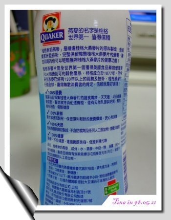 上面還寫著【部分天然珍貴的燕麥纖維會沉澱於瓶底,請先搖勻後,再開瓶飲用,口感更佳,更健康!】喔有燕麥纖維ㄟ感覺好像不錯好營養唷