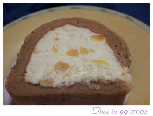 我想大概是因為冷藏的關係,內餡較軟泥,水分較多,所以被蛋糕吸收了……