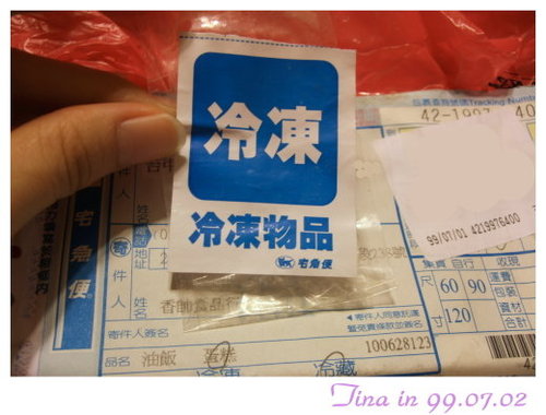 但是包裹上面,那個藍色的貼紙,寫著冷凍……