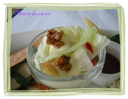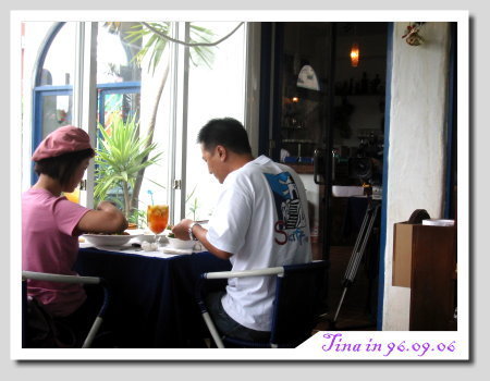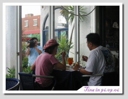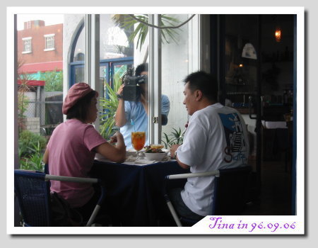 專心吃飯的我,面對著友人的相機,只瞄了一下「恩...對著食物,好,不會照到我...」,沒想到...被光明正大的偷拍了皺著眉頭的慢N拍反應照。(那個誰誰誰,仗著我的信任這樣偷拍....真是....看在拍得還不錯的份上不計較。)