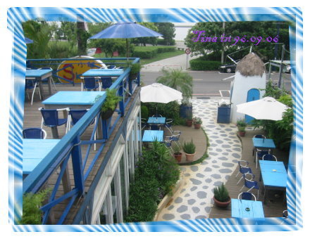 附近幾家餐廳,小艇就是出色得多,庭園、香草、藍白相間的桌椅與牆面,很海洋風情的。