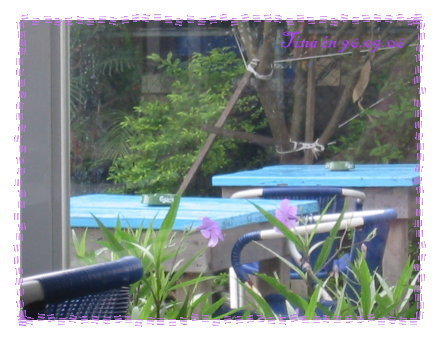 自己很喜歡這張照片,紫色的小花在窗邊搖曳,略略轉頭的剎那見到,忍不住拍了下來。