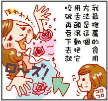 一咬開薔薇(玫瑰)的香氣就在口中散發出來,有點不太習慣這樣濃郁的香氣,將精油吞了下去後,剩下略硬的膠囊在口中像含著硬糖一般的含著直到溶化。